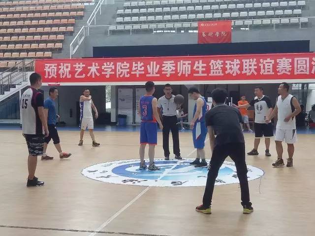 6月8日下午4點,藝術學院畢業季師生籃球聯誼賽在學校體育館舉行。學院2017屆畢業生代表與老師們展開了一場精彩的師生友誼籃球賽,經過激烈的角逐,畢業生隊以47比43的優勢,戰勝教工隊。院領導李忠偉、焦道利參加活動。