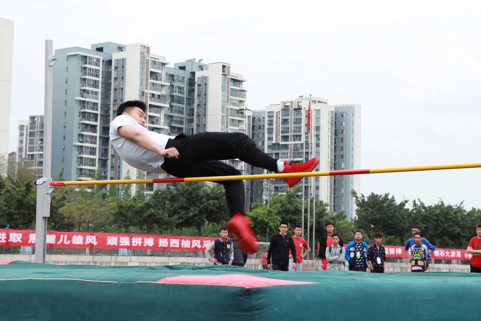 4月13日下午,男子跳高決賽在一期操場舉行,所有運動員在歡呼聲中整裝待發,本著“友誼第一,比賽第二”的精神,向我們展示了新一代石大學子的矯健身影。藝術學院喻浩洋、黃健兩名同學參加了此次比賽。