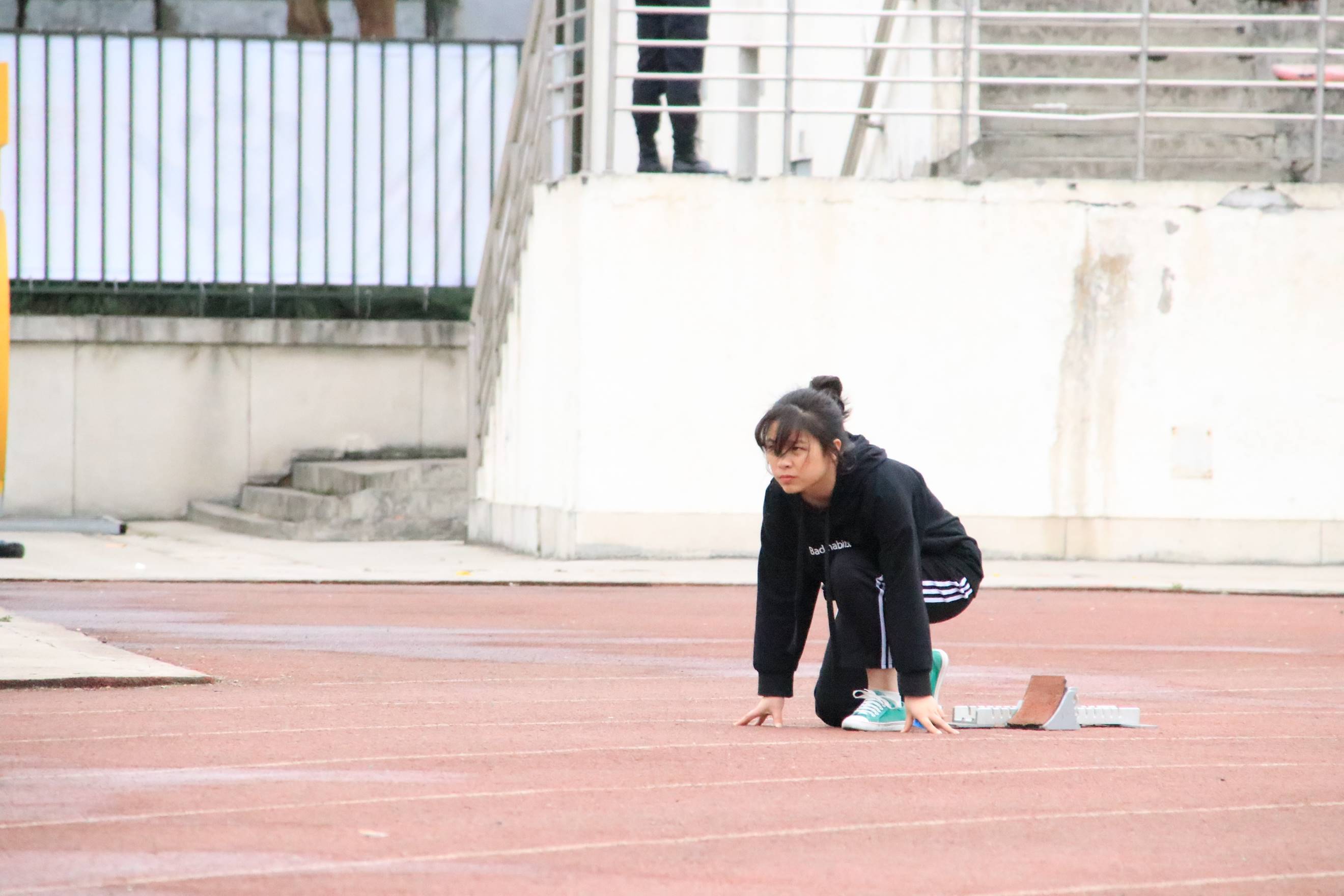 同樣參加了女子400米跑步的還有向欣怡同學,在預賽第三組的第一條跑道,有趣的是,她與彭開紅同學相反,在問及她賽前感受時她很是放松,因為她認為