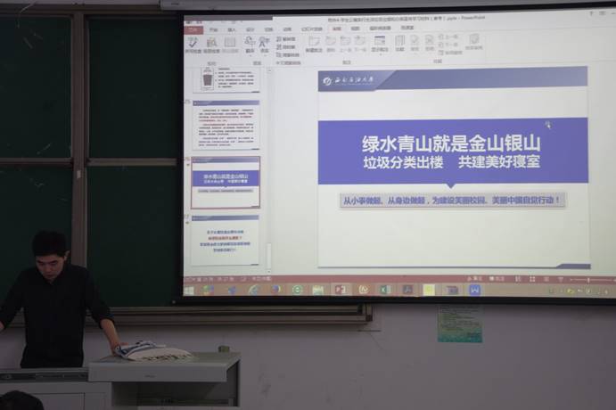 會議伊始,孫老師為大家講述了學校關于實行垃圾分類的政策,帶領同學們體會了解了垃圾分類的積極影響和具體實施辦法,“垃圾分類是什么”“如何做到垃圾分類”等角度向同學們展示環境保護對于我們的重要意義。切實落實好環境保護政策,保證資源的可利用可發展是我們大學生不可推卸的責任。
