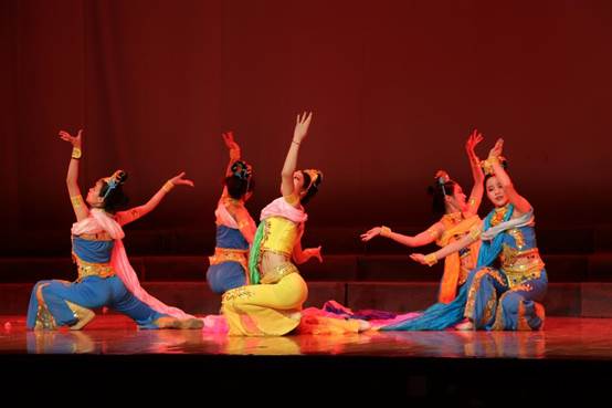 晚會以精心準備的視頻開場,接踵而至的合唱節目《青春修煉手冊》彰顯了學子們的青春氣息。多個由師生合作的節目——合唱《強國一代有我在》、歌伴舞《山笑水笑人歡笑》、民間舞串燒《蒙藏彝》、有氧操《尊巴》,不僅充分展現師生間信任與默契配合,也在歡快的節奏、跳躍的音符中展現出了當代大學生的青春與活力,贏得了場下陣陣喝彩。回望盡頭留下青蔥歲月,展望前方不盡似水流年。殷沖書記、焦道利院長、何姍副書記朗誦節目《揚帆起航》中的一句句祝福,一聲聲叮嚀,表達了藝術學院全體教師對畢業學生的美好祝福與殷切期望。晚會中精心準備的趣味師生互動,也將晚會推向了一個個高潮。聯歡會在師生創意表演《我想對你說》中落下帷幕,所有的不舍、感激、祝福、憧憬、和期盼都定格在了這一個個美好的瞬間。