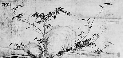 蘇軾的詩學理論貫穿在他的詩文、畫、書法之中。此《瀟湘竹石圖》傳為蘇軾所繪。