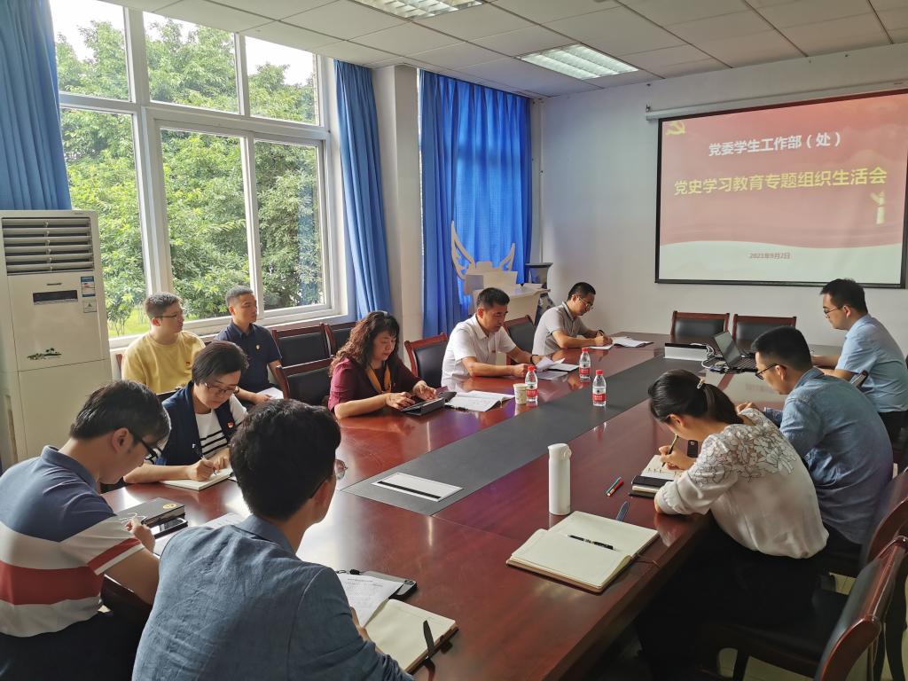學工部黨支部黨史學習教育專題組織生活會于2021年9月2日上午10:00在思學樓A201會議室召開,本次組織生活會由黨支部書記蒲勇同志主持,學校黨委副書記衡彤同志等黨支部全體黨員出席會議。會議認真貫徹“學史明理、學史增信、學史崇德、學史力行”要求,交流學習體會,查找差距不足,引導全體黨員增強“四個意識”。