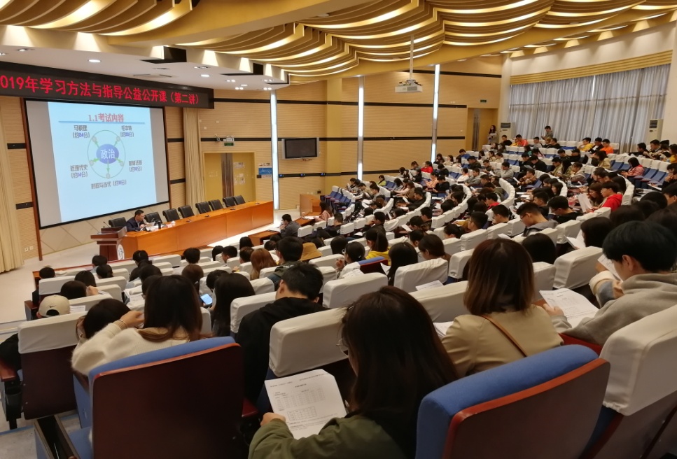瀕臨考研的沖刺期,為更好地為我校廣大考研同學(xué)提供精準(zhǔn)高效的考研指導(dǎo),10月26日下午2:30,由學(xué)工部和學(xué)生學(xué)業(yè)發(fā)展中心聯(lián)合舉辦的2019年秋季學(xué)期學(xué)習(xí)方法與指導(dǎo)公益公開課(第二講)在思學(xué)樓A114如期進(jìn)行,本次公開課面向全校有意考研深造的學(xué)生,特別邀請(qǐng)中國(guó)人民大學(xué)金柳安教授來(lái)校為大家進(jìn)行考研政治備考方法指導(dǎo),全校各學(xué)院同學(xué)積極參加,求知的熱情為寒冷的天氣增添了絲絲暖意。