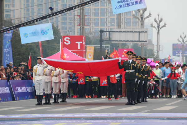 值得一提的是,此次是我校國旗護衛(wèi)隊第二次參加馬拉松比賽開幕式的升旗任務(wù)。