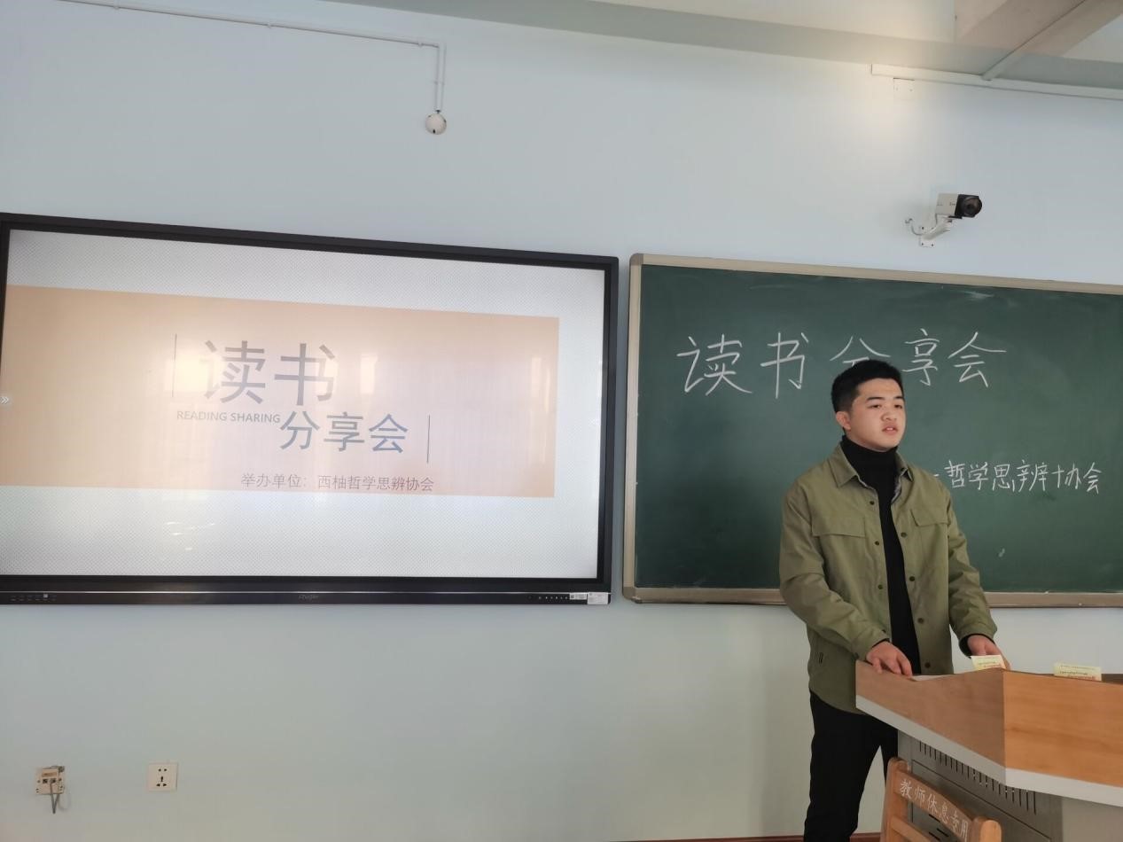 為提高同學們的思辨能力和認知能力,促進思想交流,12月2日下午,西柚哲學思辨協會于思學樓C304開展讀書分享活動。協會指導教師蒲勇老師與陳俐宏老師及協會成員參與,主持人以書籍名言引入主題,分享活動正式開始。