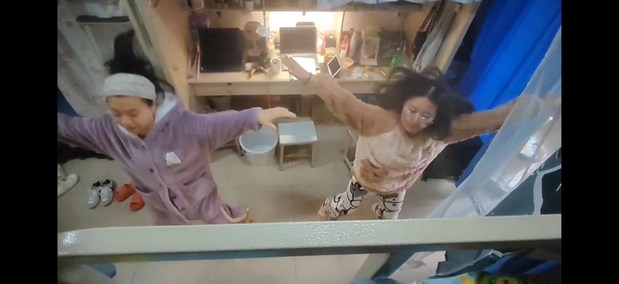 伍文靜帶領(lǐng)寢室室友積極鍛煉身體