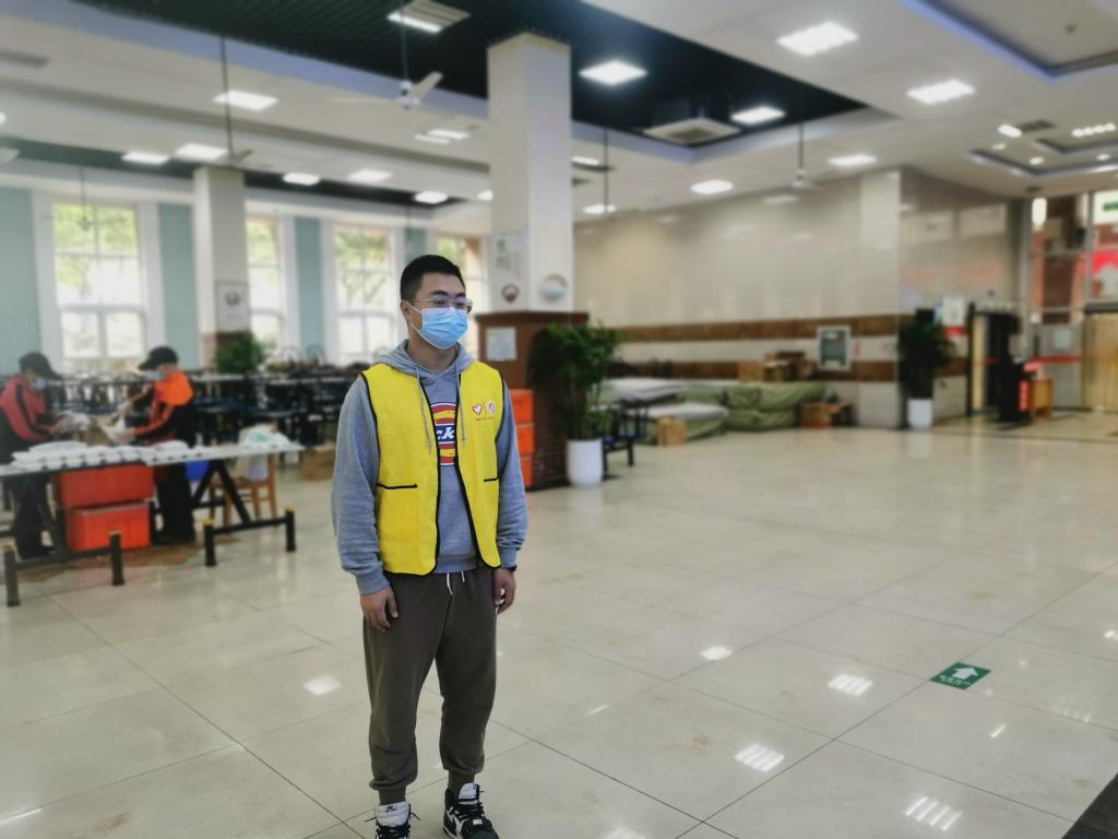 校青協(xié)主席團成員張映江立即投入到了應(yīng)急志愿服務(wù)的工作中來,對前往學生一線的各崗位志愿者進行協(xié)調(diào)安排。在志愿服務(wù)中,他提到“每一位志愿者都展現(xiàn)了“疫”無反顧的擔當,有序前往各個點位維持秩序,為防疫筑起一堵堅實的城墻。”同樣作為一線志愿者的袁繼興,奮戰(zhàn)在疫情防控工作前線,在食堂維護秩序和負責餐盒打包,同時擔任層長,提醒同學佩戴口罩、下樓做核酸,協(xié)助開展核酸檢測、出入門卡發(fā)放等工作。