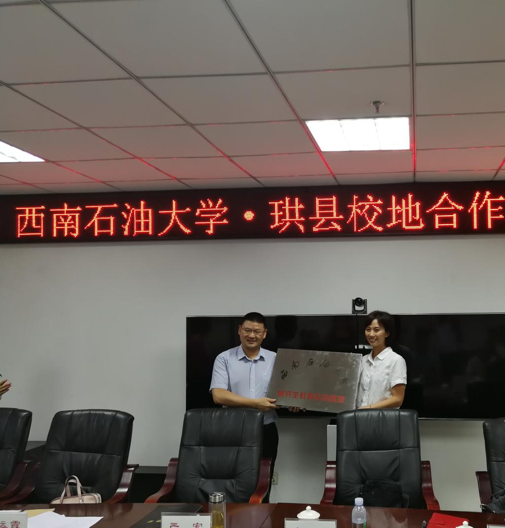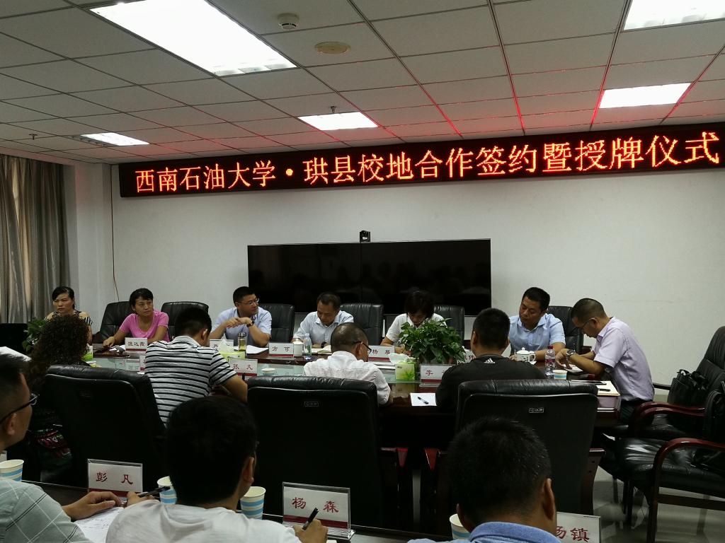 在校地合作項目簽約暨授牌儀式上,嚴宏部長首先感謝我校對“百名碩博士進珙縣”校地合作項目的支持,他介紹到珙縣地處四川盆地南緣,位于川、滇、黔三省結合部,是萬里長江第一城宜賓“半小時經濟圈”的重要輻射區,也是“長寧-威遠”和“滇黔北-昭通”兩大國家級頁巖氣開發示范區的核心區。珙縣緣僰而名,因林而美,由礦而興,尤其在頁巖氣勘探、開發和利用等方面能和我校深度合作和參與。當前,珙縣正深入實施“人才+”戰略,構建開放的“大人才觀”,希望來珙縣掛職的研究生能把鍛煉自我和服務社會有機結合起來,為珙縣的經濟社會發展建言獻策。隨后,方可首先介紹了學校的基本情況,然后談到:從下車伊始,我們一行就被珙縣人民的熱情接待和精心安排所感動,更深切地感受到了珙縣對高層次人才的渴求,作為校方,我們將嚴格按照珙的要求,將校地合作項目作為學校推進研究生教育教學改革的優質精品項目,用心組織、廣泛宣傳,選擇優秀研究生到珙縣掛職鍛煉,為珙縣輸送更多優秀人才。最后,方可部長代表學工部(研工部)與珙縣縣委組織部簽訂了校地合作協議,楊雁代表研究生院與珙縣縣委組織舉行了授牌儀式。