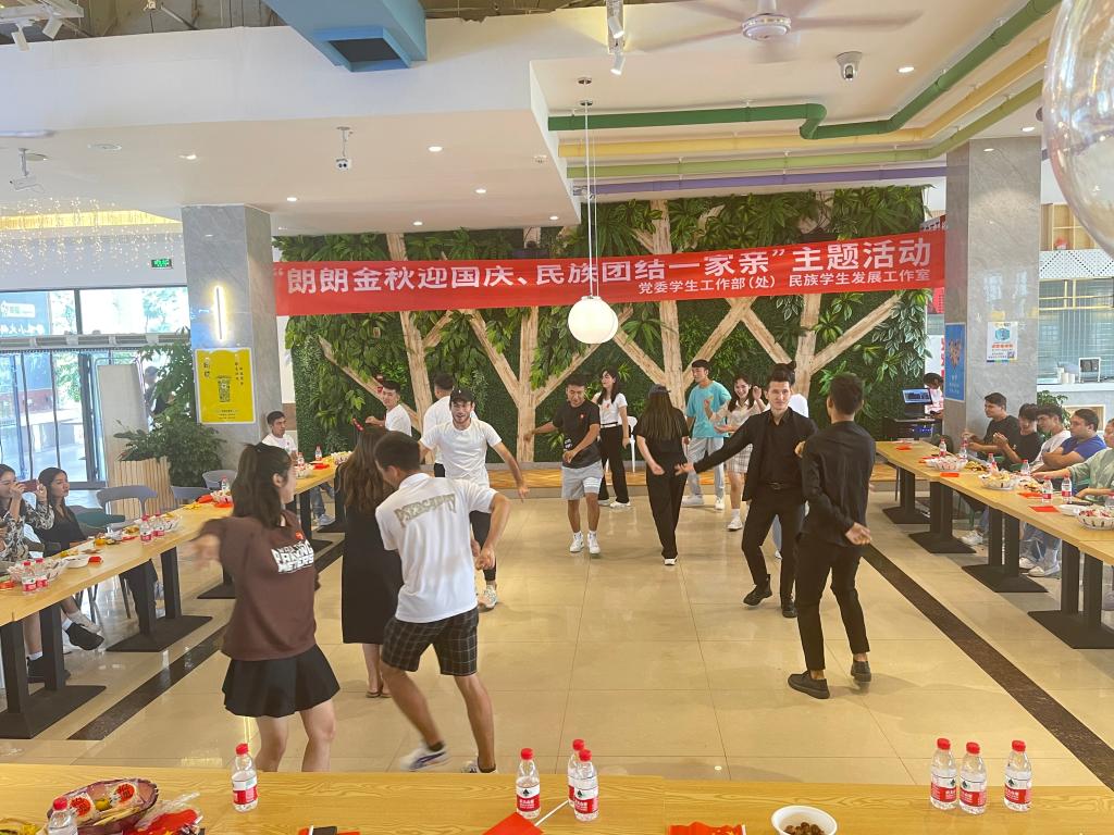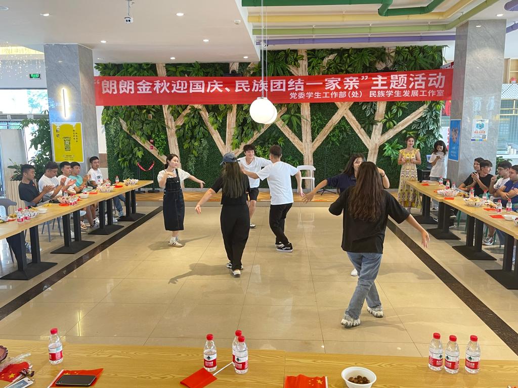 2021年10月1日上午10:00在學(xué)生三食堂二樓進行開展了“朗朗金秋迎國慶、民族團結(jié)一家親”主題活動,各少數(shù)民族同學(xué)共同慶祝國慶,寄寓了中華民族一家親、同舟共濟一家人的美好情懷。活動中新老生活躍發(fā)言進行經(jīng)驗交流,此外,為了豐富活動內(nèi)容,活動現(xiàn)場設(shè)置了有獎問答小游戲,歌舞表演等環(huán)節(jié)。