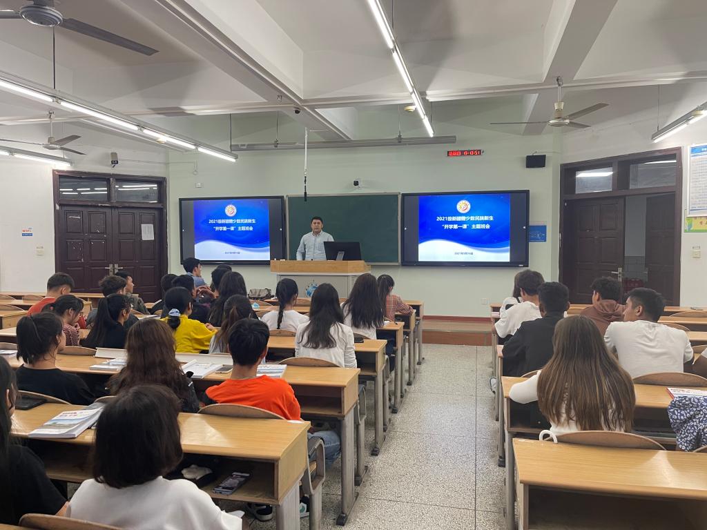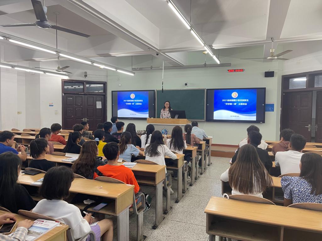 秋高氣爽,瓜果飄香,在這朗朗金秋我們又迎來了新的學期。為幫助和引導新疆籍少數民族新生提升理想信念、適應新的學習生活環境,黨委學生工作部(處)民族學生發展工作室于2021年9月16日在思學樓A216面向校本部全體2021級新疆籍少數民族新生召開“開學第一課”主題班會。黨委學生工作部(處)副部長張浩、大學生教育管理科副科長鄭帥,新疆內派教師任環、艾克白爾·買吐努熱、專職少數民族輔導員熱依汗參加了本次主題班會。班會由專職少數民族輔導員熱依汗主持。