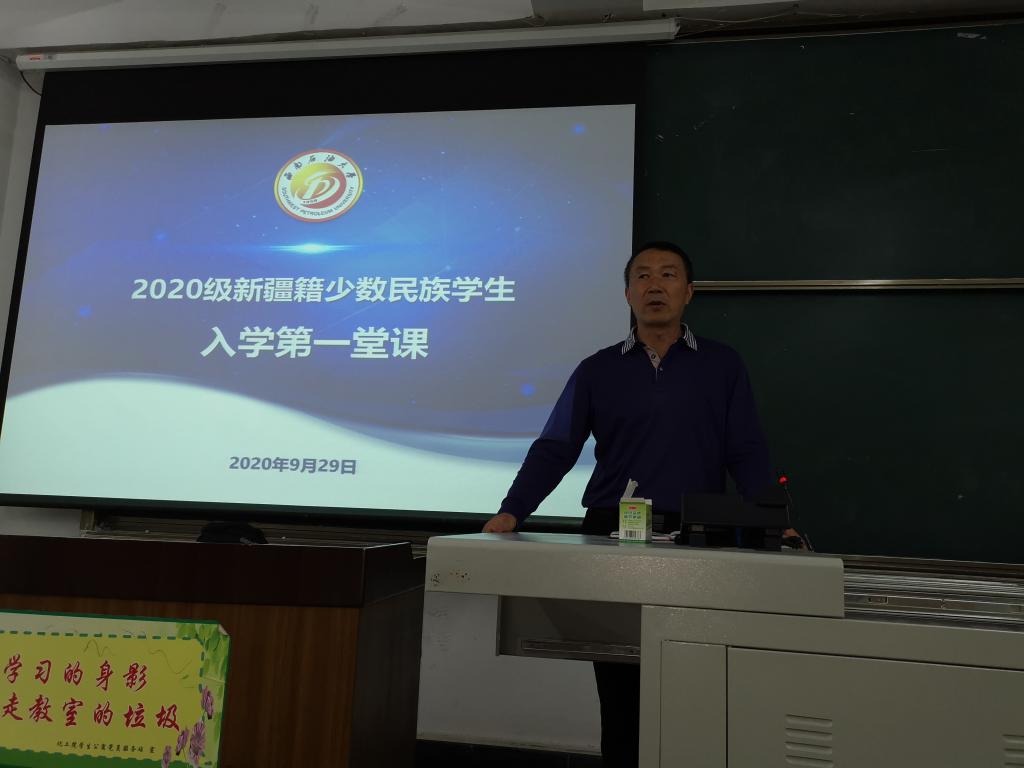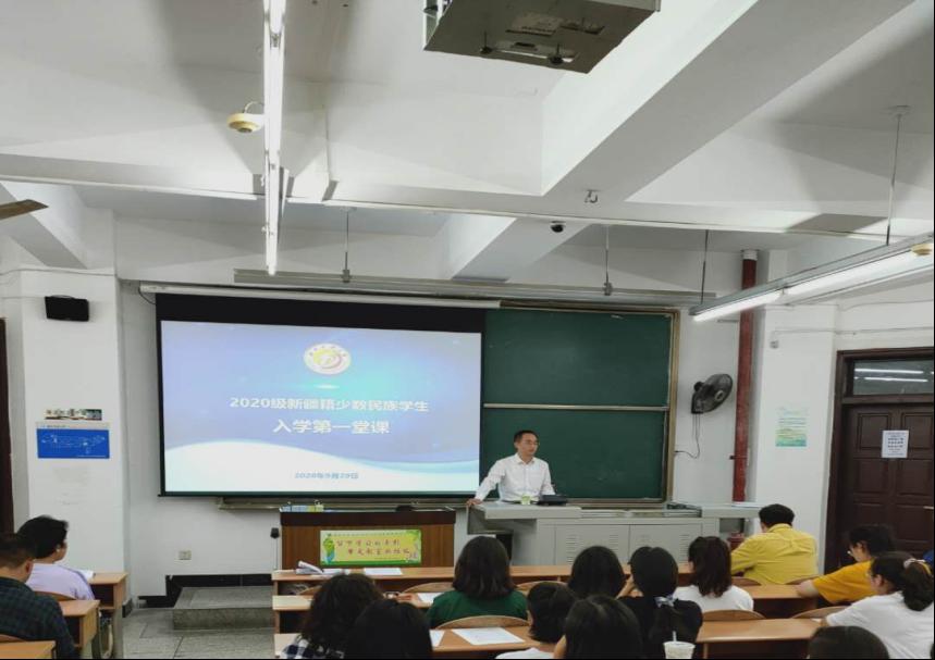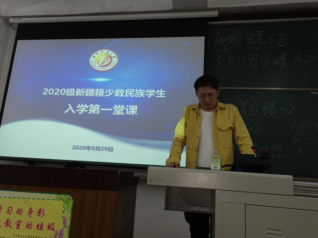 為進一步加強我校少數(shù)民族學生思想政治教育工作,于9月29日晚上在思學樓A213舉辦了少數(shù)民族學生“入學第一課”活動,2020級新疆籍少數(shù)民族新生聆聽此次入學第一課。黨委學工部副部長張浩、新疆內(nèi)派教師李群武以及新疆籍少數(shù)民族輔導員熱依汗、艾尼扎提參加了此次活動。