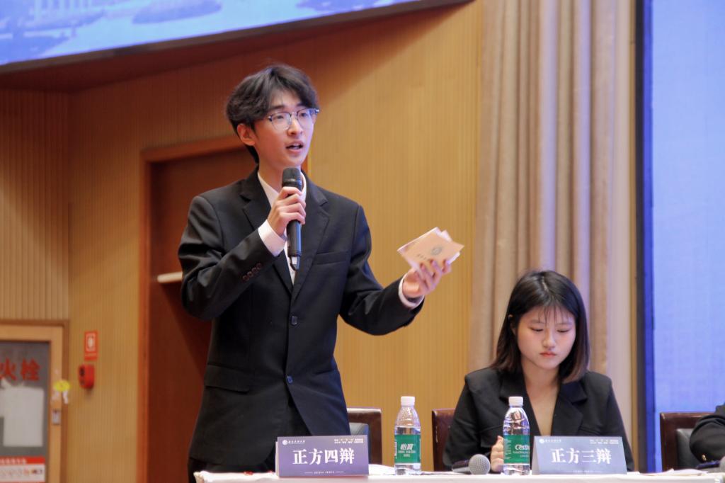 此次決賽由理學院的“思理明辨隊”和藝術學院的“藝往無前隊”對壘,爭奪冠軍。雙方圍繞“直面現實還是忠于理想,在當今時代更重要”這一辯題展開辯論,雙方辯手準備充分,在立論、質詢、盤問、總結等環節中,展現出了高超的辯論技巧和深厚的理論功底,整場比賽節奏緊湊,氣氛熱烈,雙方你來我往,互不相讓,為觀眾呈現了一場精彩的思辨盛宴。經過激烈角逐,最終,藝術學院的“藝往無前隊”獲得冠軍。理學院任思嘉榮獲“全程最佳辯手”稱號。