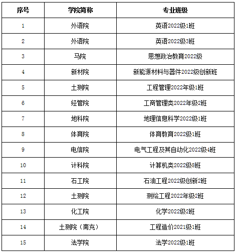 為進一步創新學生班級建設方式,推動學生日常教育管理服務與易班建設高度融合,加快構建我校以易班為主體的網絡育人工作格局,切實提升我校網絡育人工作實效,有效增強我校易班的示范性、引領性和輻射度,推動學習貫徹習近平新時代中國特色社會主義思想主題教育走深走實,根據《西南石油大學易班“十大網絡班級”評選辦法(試行)》,本著公平、公正、公開的原則,經自愿申報、學院初選、材料評比、復賽答辯等程序,入圍2022-2023學年(第七屆)易班“十大網絡班級”決賽的15個班級(排名不分先后)已產生。具體如下: