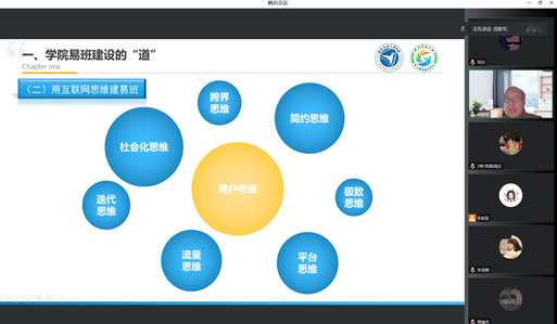 課程以學(xué)院易班建設(shè)為中心。課程伊始,岳陳軍明確了易班建設(shè)的“道”,即易班建設(shè)的價(jià)值意義,闡述了學(xué)生群體對(duì)于易班認(rèn)識(shí)的五大誤區(qū)、互聯(lián)網(wǎng)思維建設(shè)的八大思維分論;第二部分“法”,岳陳軍介紹了通過易班而創(chuàng)設(shè)的教育、管理、團(tuán)隊(duì)等活動(dòng),旨在表明易班的實(shí)用性與簡(jiǎn)便性;第三部分“器”,從“輔導(dǎo)員”、“學(xué)生骨干”兩個(gè)層面,為同學(xué)們闡述了不同群體在易班建設(shè)中的應(yīng)用;在第四部分“術(shù)”中,岳陳軍通過實(shí)際演示,為同學(xué)們展示了易班輕應(yīng)用的具體操作及其使用優(yōu)勢(shì),讓同學(xué)們更直觀地了解易班輕應(yīng)用。