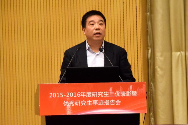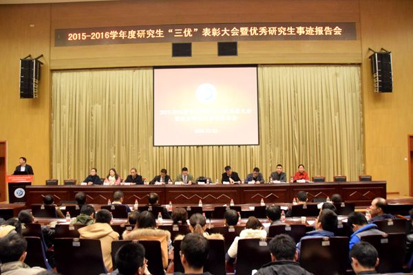 12月22日下午,2015-2016年度研究生“三優”表彰大會暨優秀研究生事跡報告會在圖書館報告廳舉行。副校長郭建春出席報告會并講話,學工部部長蒲勇主持會議。