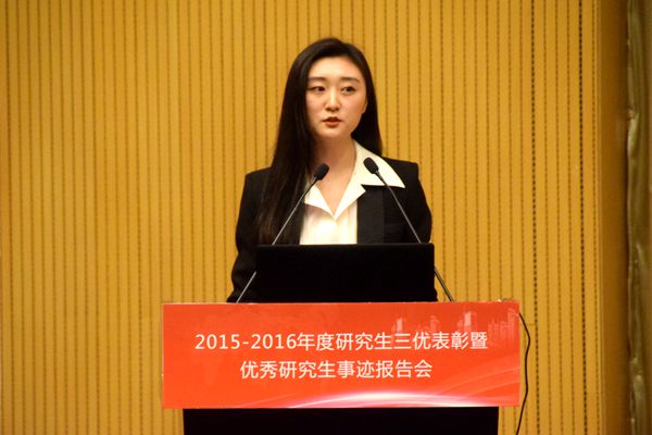 在優秀研究生事跡報告會上,3名十大杰出研究生,2名十大學術成就獎,2名十大優秀研究生干部和1位先進班集體代表分別分享了他們的學習經歷、實踐心得與管理經驗。