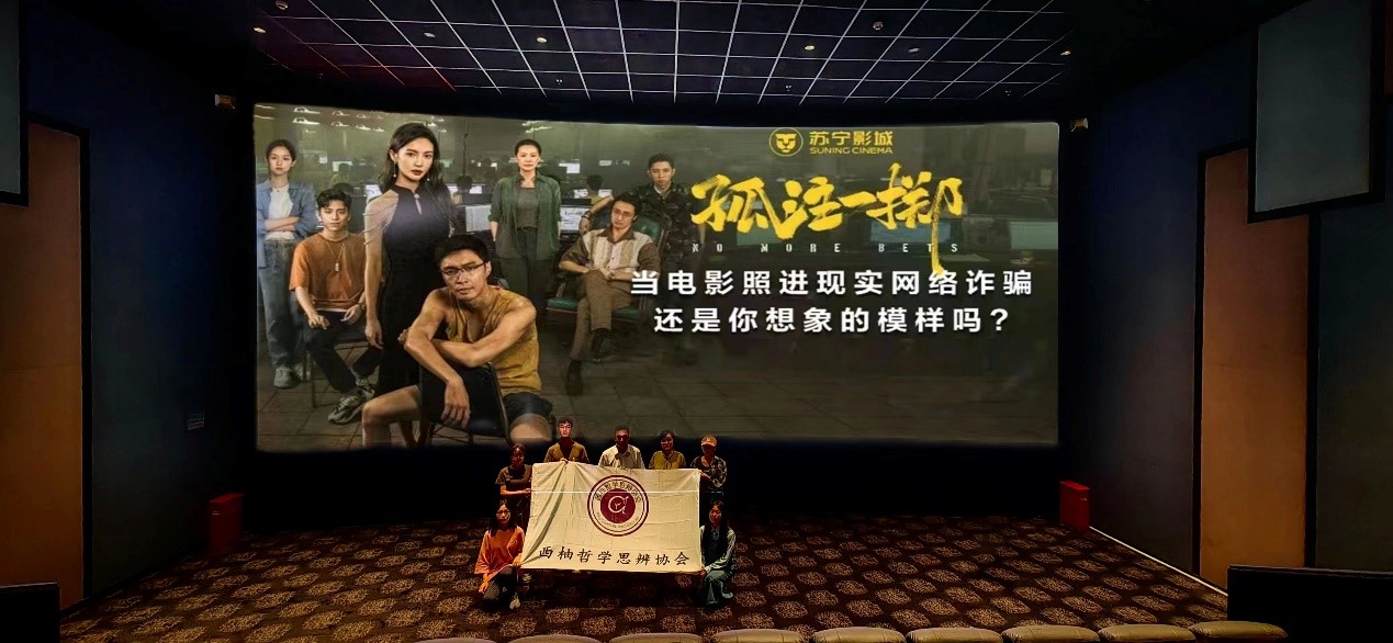 為增強協會會員網絡安全意識,牢固樹立總體國家安全觀,推動社團未來健康發展,2023年9月15日,西柚哲學思辨協會理事在指導教師蒲勇和陳俐宏的帶領下,一同觀看電影《孤注一擲》,沉浸式體驗電信網絡詐騙帶來的危害。