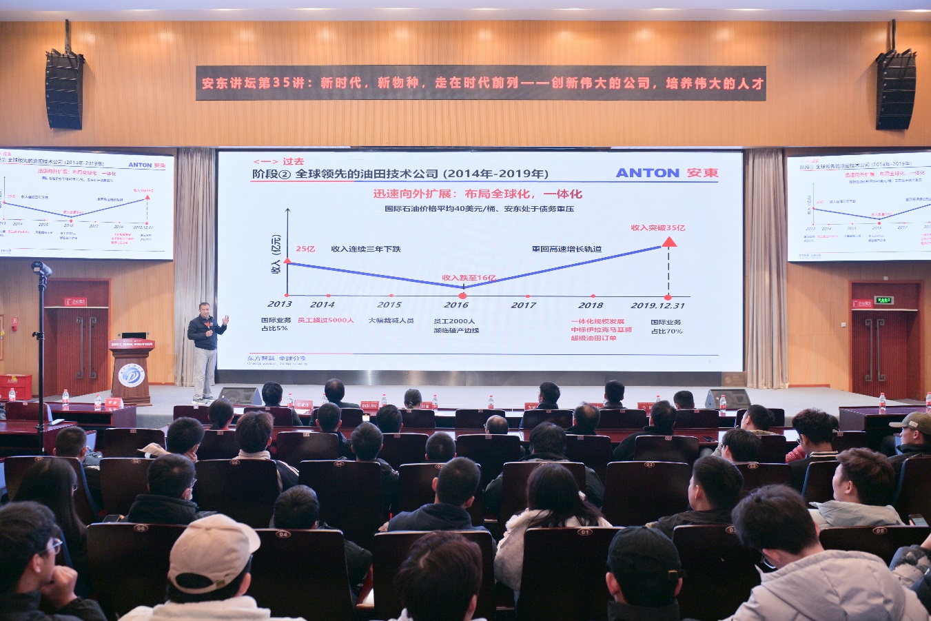 “安東講壇”在安東油田服務(wù)集團(tuán)的贊助支持下,已成功舉辦35講,曾邀請(qǐng)尼格買提、馬伯庸等名家大師來(lái)校講座,致力推動(dòng)優(yōu)秀企業(yè)文化、高端學(xué)術(shù)、高雅藝術(shù)進(jìn)校園。