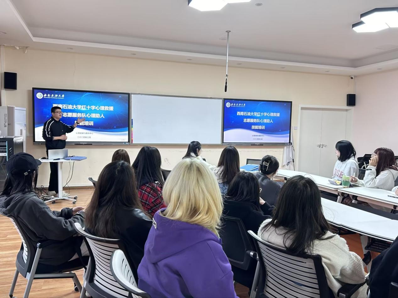 為進一步凝聚紅十字心理救援服務隊伍力量,高質量開展新學期心理救援服務工作,提升志愿服務工作的科學性、針對性和保密性,3月19日晚,心理發展與服務中心組織開展了紅十字心理救援志愿服務隊心理助人技能培訓。本次培訓由心理中心樊玉騁老師主講,中心全體紅十字心理救援志愿者參與了本次培訓。