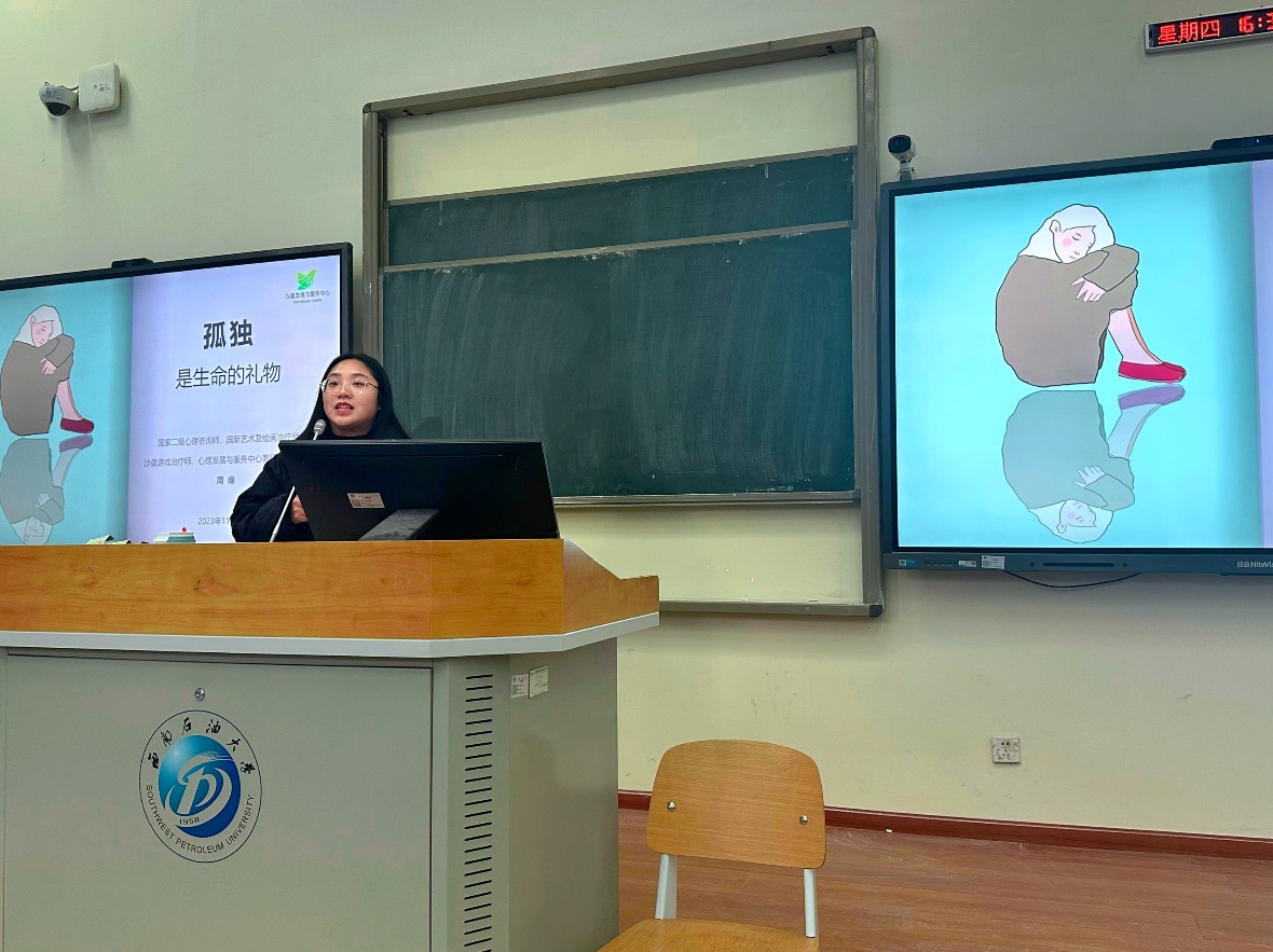11月30日16:30,由心理發展與服務中心主辦,化工院承辦的陽光“心”成長系列講座第七期在思學樓B110順利開展。本次講座邀請到的主講嘉賓是國家二級心理咨詢師、心理發展與服務中心兼職心理咨詢師——周緣。本次活動累計有200余名本科生和研究生參加。本次講座的主題是“孤獨是生命的禮物”,旨在幫助大學生們理解孤獨,接納孤獨,助力個人的成長與發展。
