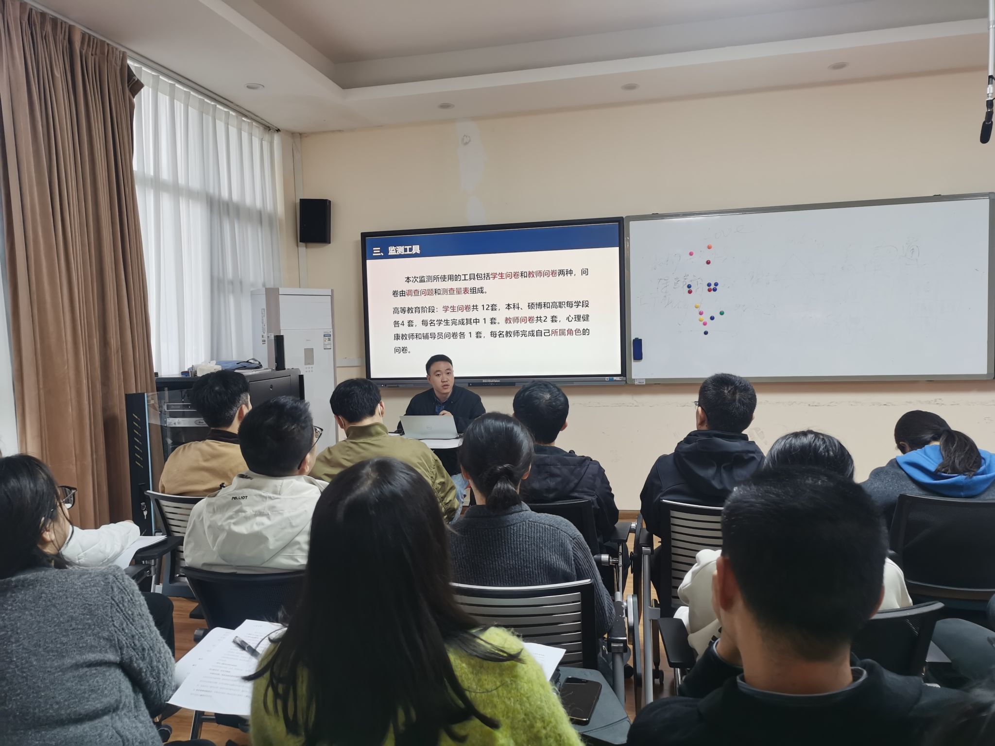 心理中心副主任舒小立在會上強調了監測工作的重要性,希望各級參與人員厘清職責分工、做好統籌安排,提前完善應急方案,強化工作紀律,嚴守保密原則。她表示,作為首次入選全國學生心理健康監測的樣本院校,我校對該項工作給予高度重視,將嚴格按照教育部的統一要求與規范流程,認真組織,依據學校制定的詳細實施方案與進度時間表高效推進工作;老師們應充分重視各崗位的工作任務,加強對學生的引導與現場指導,力求實現監測過程的科學規范與數據結果的真實可靠。