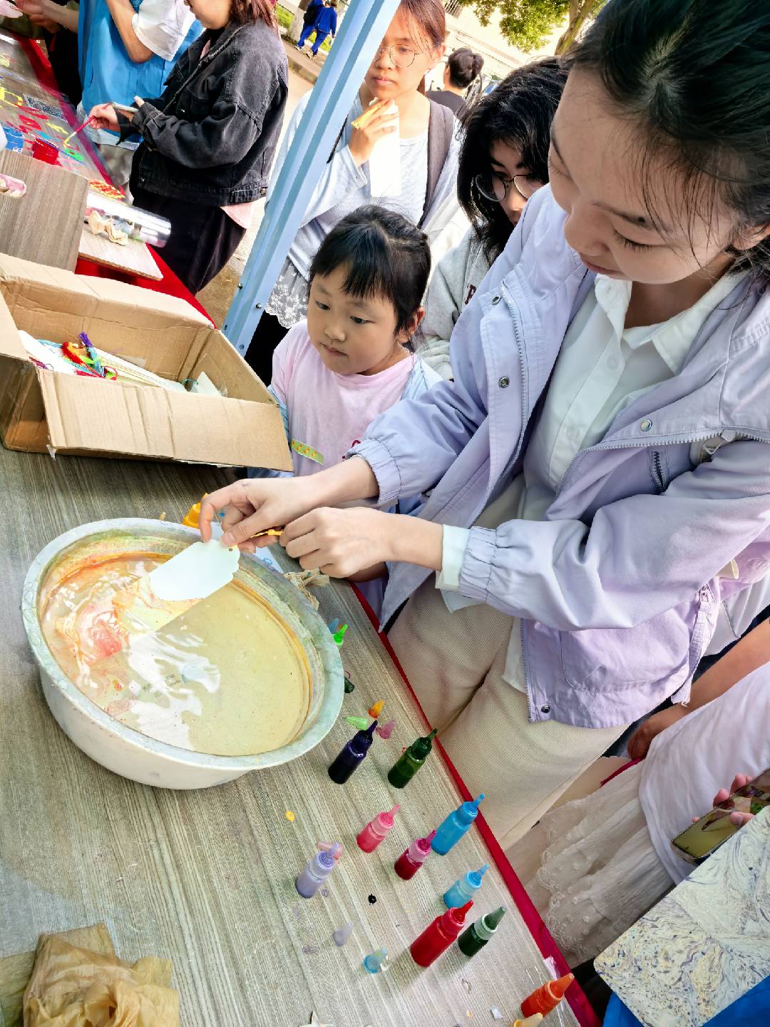 活動現場的氣氛熱烈而溫馨。同學們在工作人員的指導下,紛紛發揮創意,沉浸在漆扇制作的過程中。有的同學將絢麗多彩的漆料巧妙搭配,繪制出夢幻般的星空圖案;有的同學則以自然為靈感,勾勒出花鳥魚蟲的靈動姿態。創作中,同學們專注調配色彩,自發交流創意,現場歡笑聲不斷。在制作過程中,不少同學表示,平時學習任務繁重,很少有機會靜下心來進行藝術創作。這次漆扇制作活動,讓他們暫時卸下了學業的壓力,全身心投入到色彩與線條的世界中,感受到了內心的平靜與愉悅。