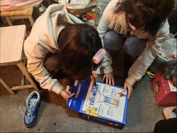 在前期準備工作完畢后,各學生團隊根據創意設計方案,選擇可利用的廢棄物品,進行改造美化裝飾。大家利用手提袋、礦泉水瓶、紙箱等廢棄物品,進行裁剪、制作、裝飾,將廢棄舊物改造成精美實用的物品。普通的宿舍廢棄物品經過改造裝飾,搖身一變成為紙巾盒、收納盒、書立等等宿舍精美物品,同學們的改造物品各具特色、各有價值。