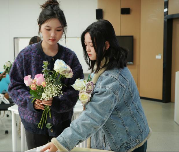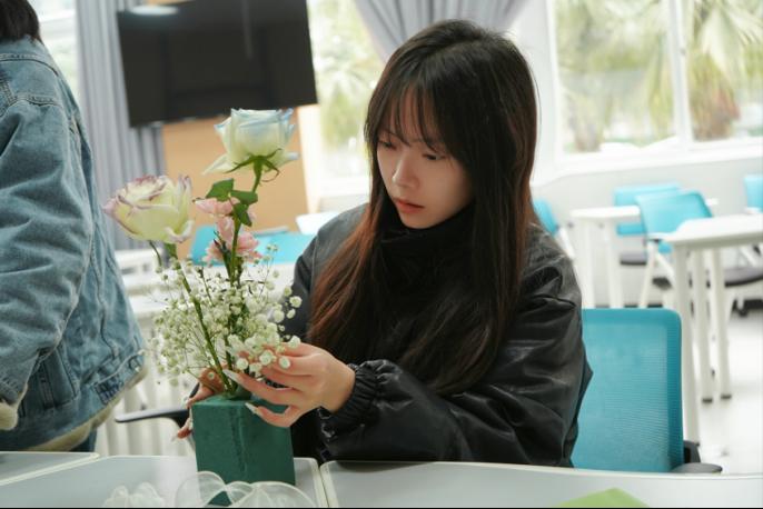 精致的小花籃一點點被美麗的鮮花插滿,大家被甜蜜芬芳的幸福填滿,參與活動的同學們紛紛表示,參與此次插花活動,既是一次美妙的體驗,也是一次有意義的社交活動。活動末尾,同學們把自己的插花作品帶回裝點宿舍,成就感滿滿。